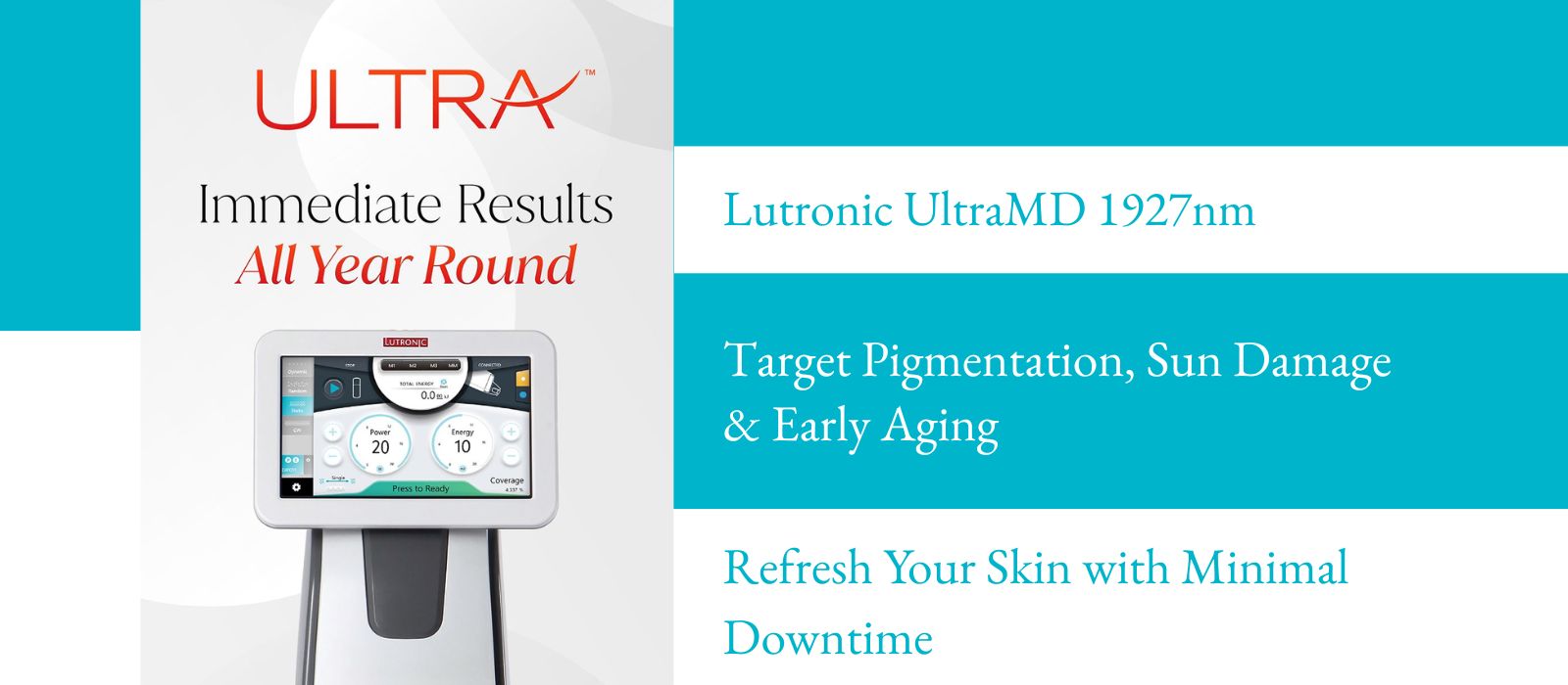 The Lutronic UltraMD 1927nm is a fractional, non-ablative laser designed to improve skin texture, tone, and overall radiance. It targets pigmentation, sun damage, early signs of aging, and more with minimal downtime.